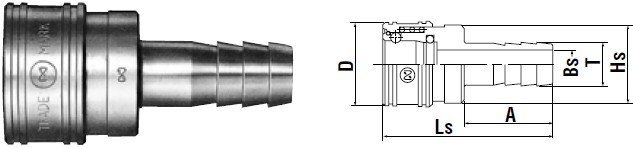 商品名 : 双自封闭中压快速接头 <G6N> 材质:钢铁、黄铜、不锈钢 适用介质:水、油、空气、药品、工业气体 适用压力:钢铁及不锈钢2.0Mpa~7.5Mpa 黄铜2.0Mpa~5.0Mpa 密封材质:丁晴橡胶、氟橡胶、乙丙烯橡胶 适用温度范围:-20℃~+180℃ 商品编号:H100365